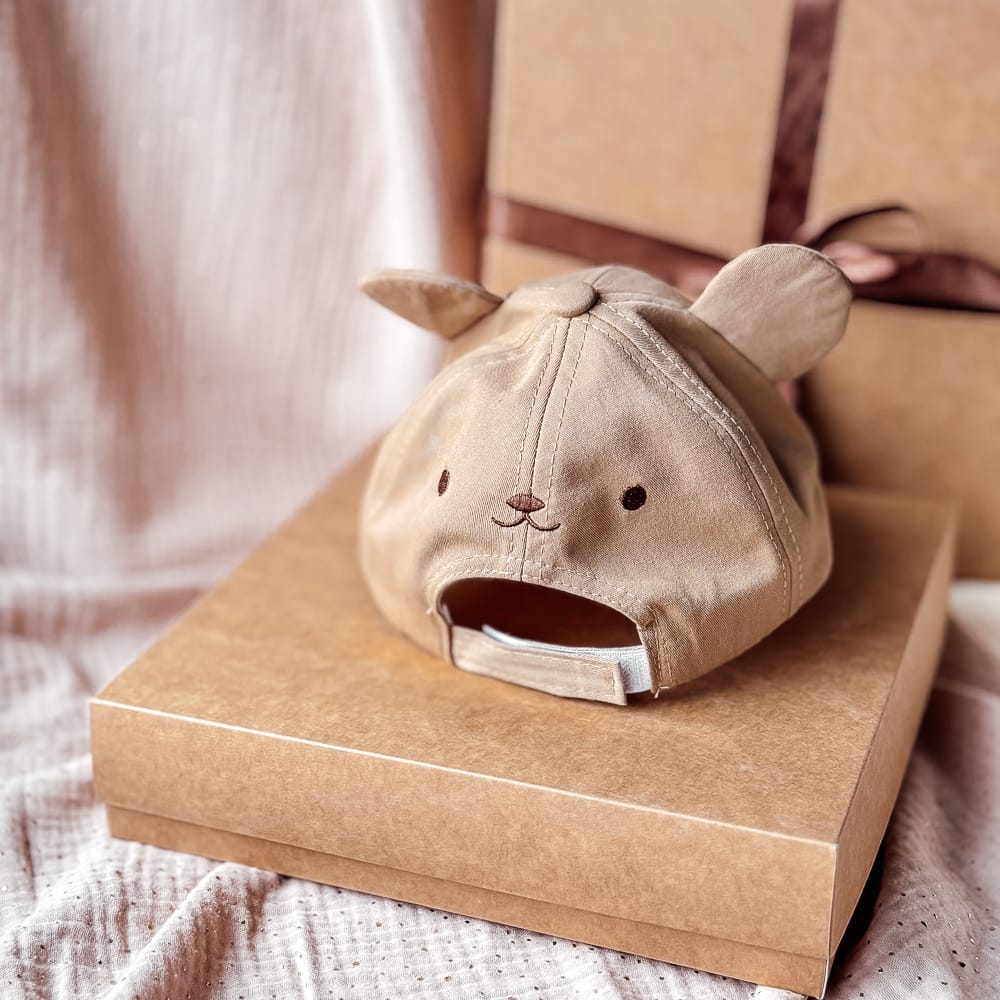 Žavi vasarinė kepurė su snapeliu nuo saulės. Mielos meškučio ausytės. Reguliuojamas dydis