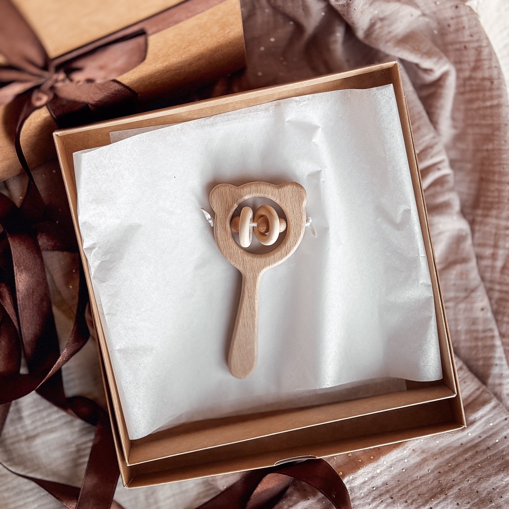 Natūralios medienos barškutis mažyliams. Be BPA ir be kitų toksiškų medžiagų.