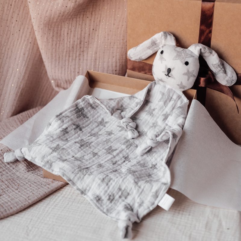 Švelnus ir mielas, muslino migdukas – zuikutis yra tikras saugumo ir jaukumo šaltinis jūsų mažyliui nuo pat pirmųjų dienų. Tai ne tik praktiškas aksesuaras, bet ir jauki rūpestinga dovana naujagimiui.